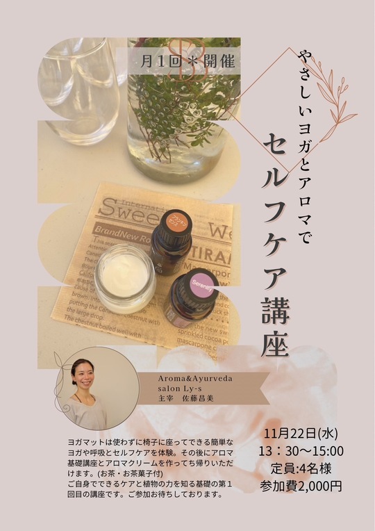 『やさしいヨガとアロマでセルフケア』のレッスンです。