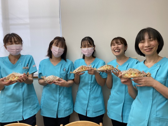 写真はスタッフの小野春香さんの誕生日のお祝いの様子です。今年度のクリニックからのお祝いは、果物の盛り合わせです。小野さんのご家族はとても喜んでくれたそうです。スタッフが熱心に職責を果たしてくれるので、きむら歯科クリニックは歩んでいけます。