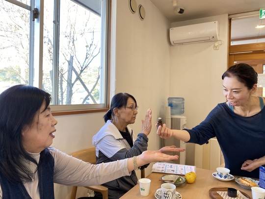椅子を使ったヨガの実践と植物を抽出した純粋なアロマオイルの力についてのお話とアロマのクリーム作りを行いました。皆さん、熱心に参加くださり、「今日は来てよかった」と喜んでくださいました。